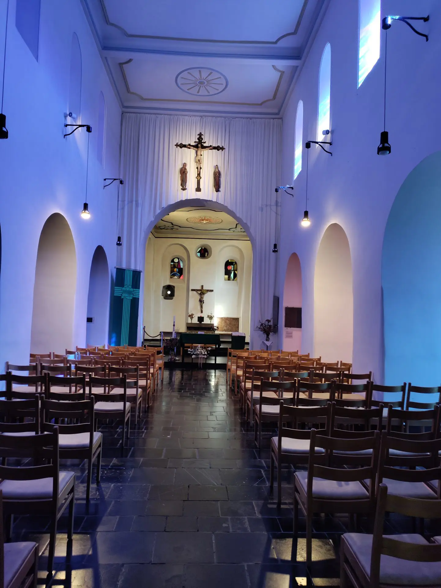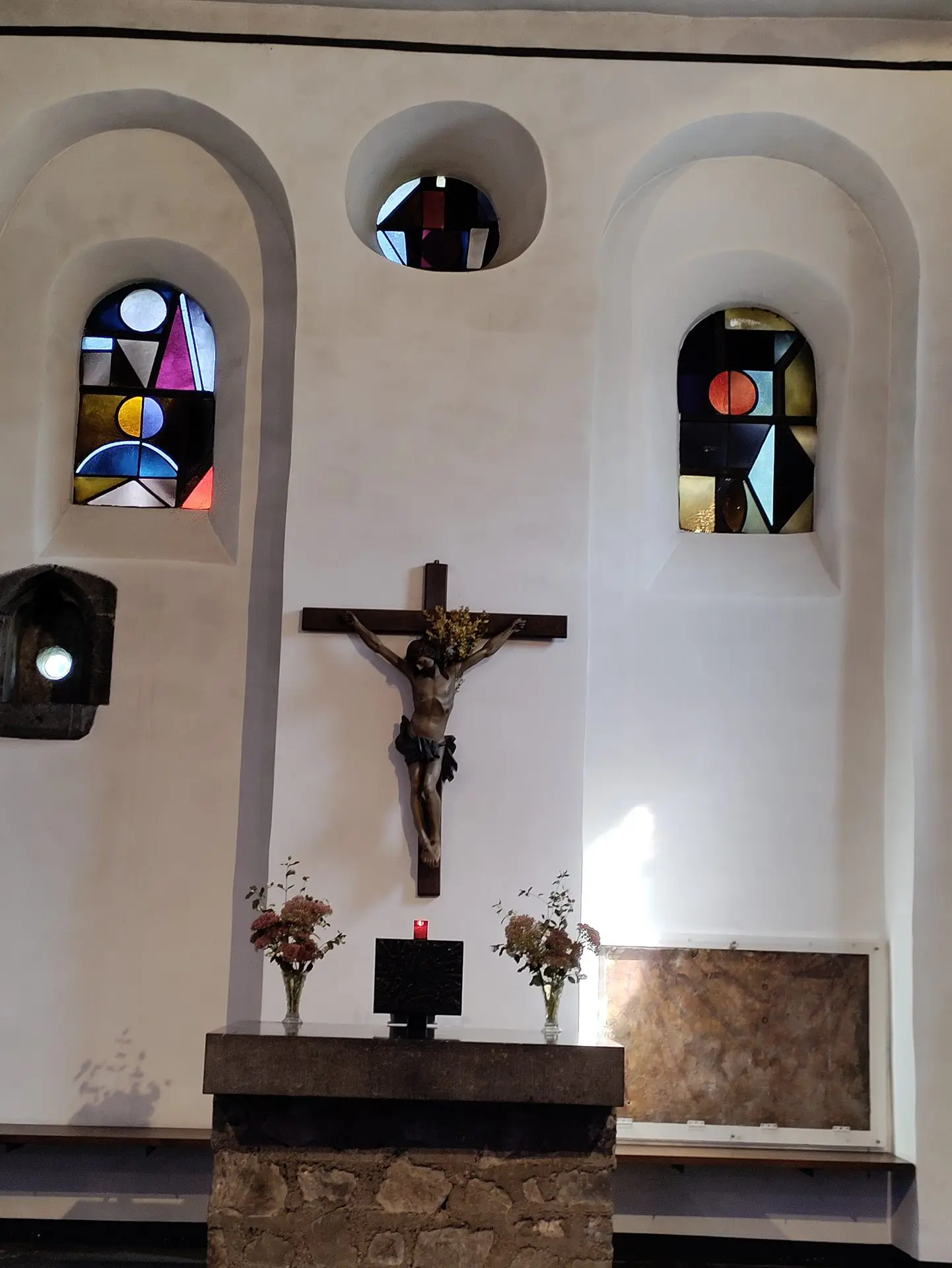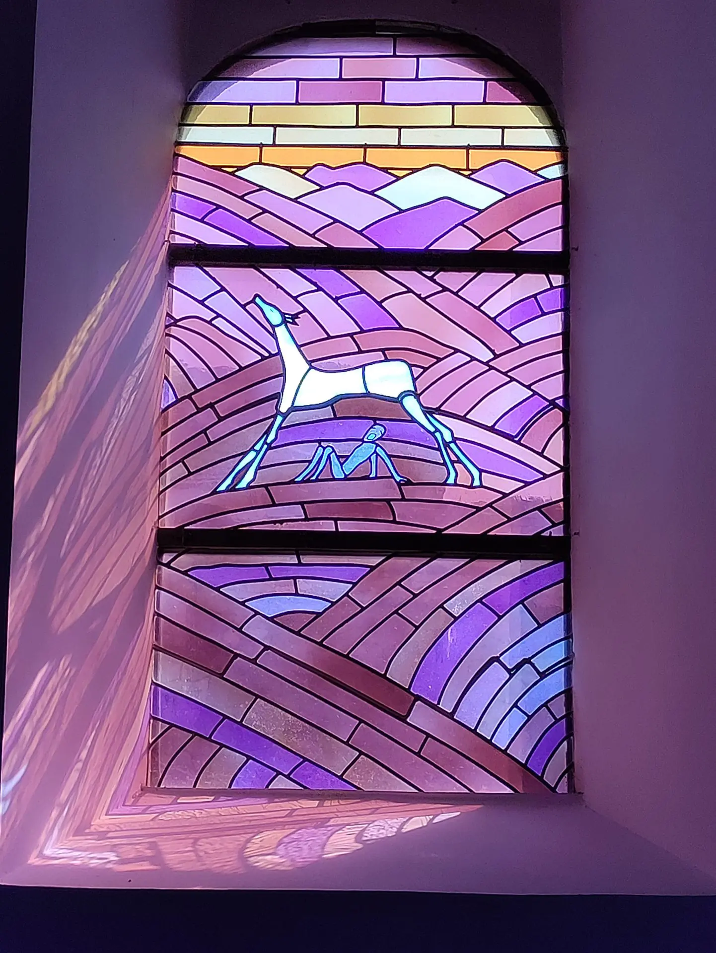 content en 6 épisodes la vie et le martyr de saint Étienne. En ce jour de soleil, l’intérieur de l’église reflète une atmosphère un peu magique.