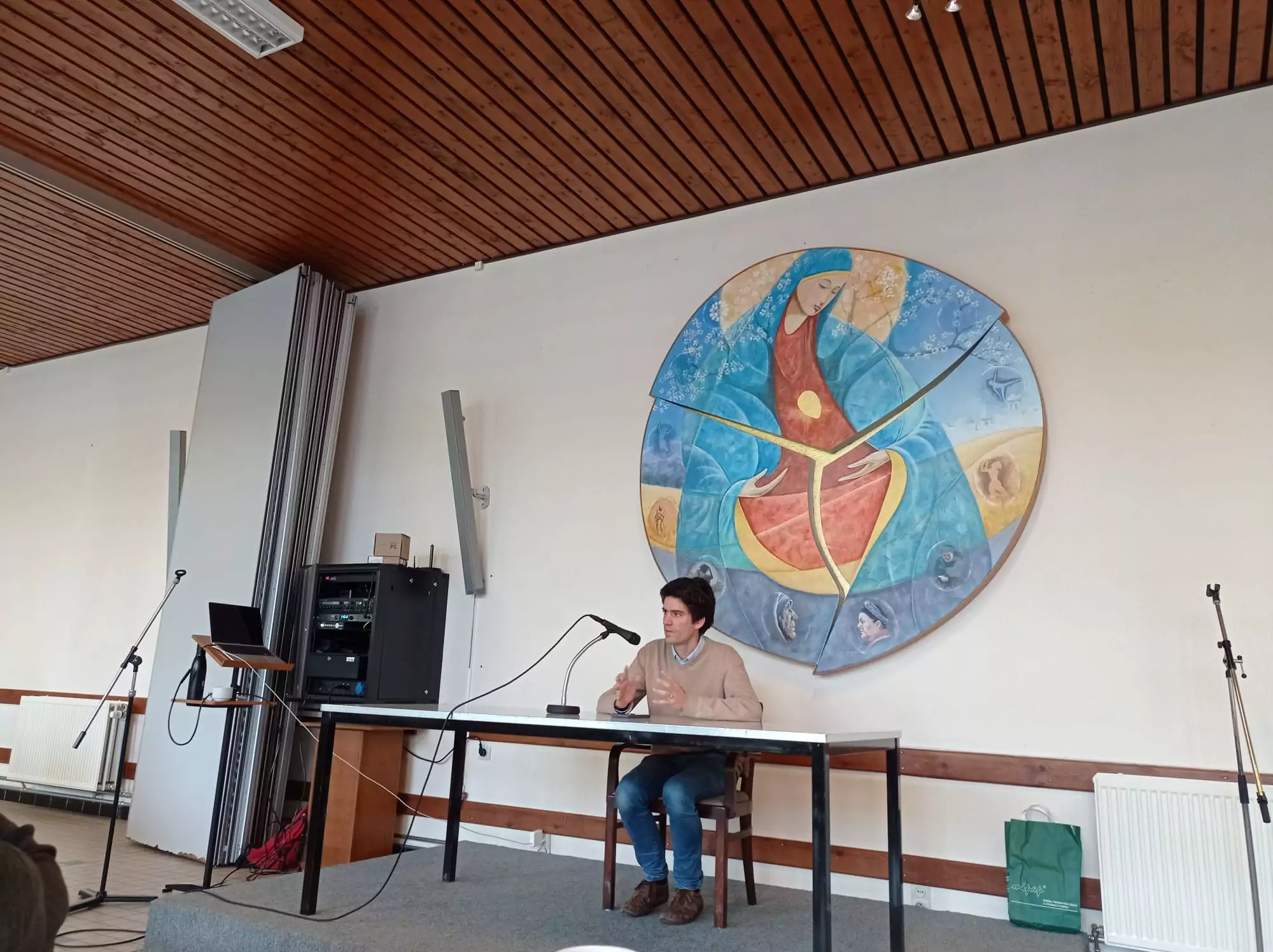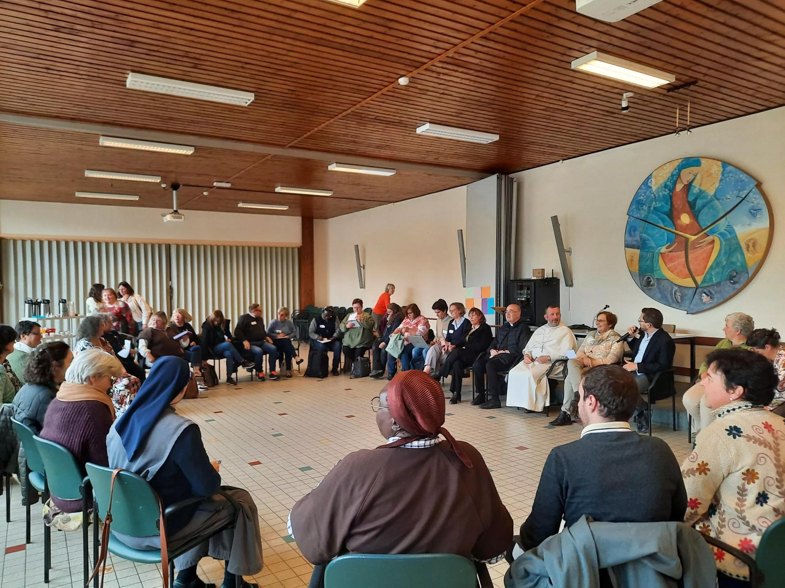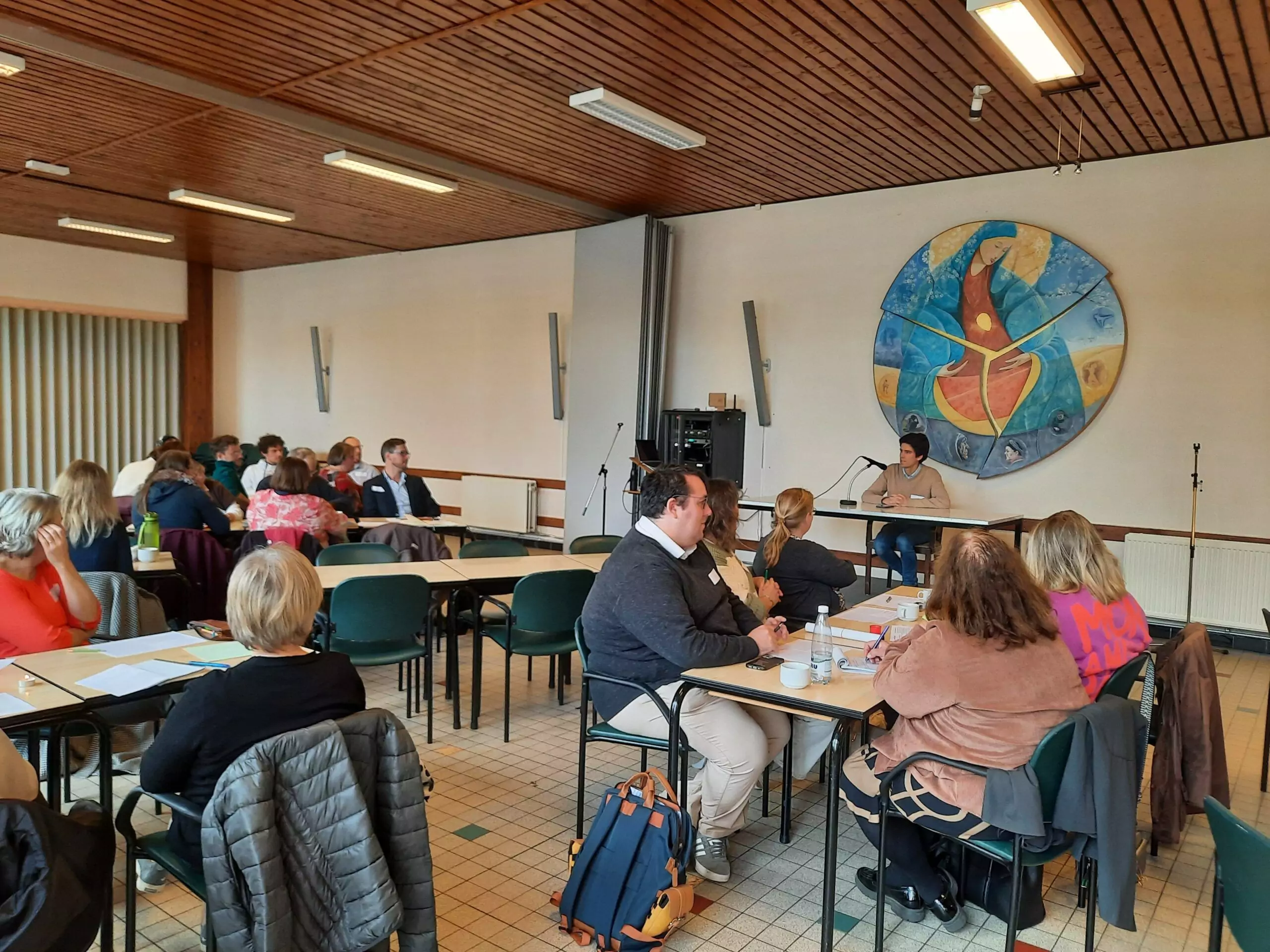 Dernier intervenant de cette journée, le Père Abbé de l’abbaye de Leffe, le père Christophe Monsieur. Il a tenu à partager son expérience vécue sous la règle de Saint-Augustin. « Cette forme de vie religieuse repose sur une communauté fraternelle unie dans la prière et le service, tournée entièrement vers l’Eglise. » Au fil des rencontres qu’il a pu faire jusqu’à présent, le Père Abbé explique combien de personnes sont à la recherche de leur être profond. « La Parole du Seigneur peut-être une source de lumière et de transformation pour tous ceux qui cherchent à mieux se connaître et à retrouver un chemin de paix intérieure. »
