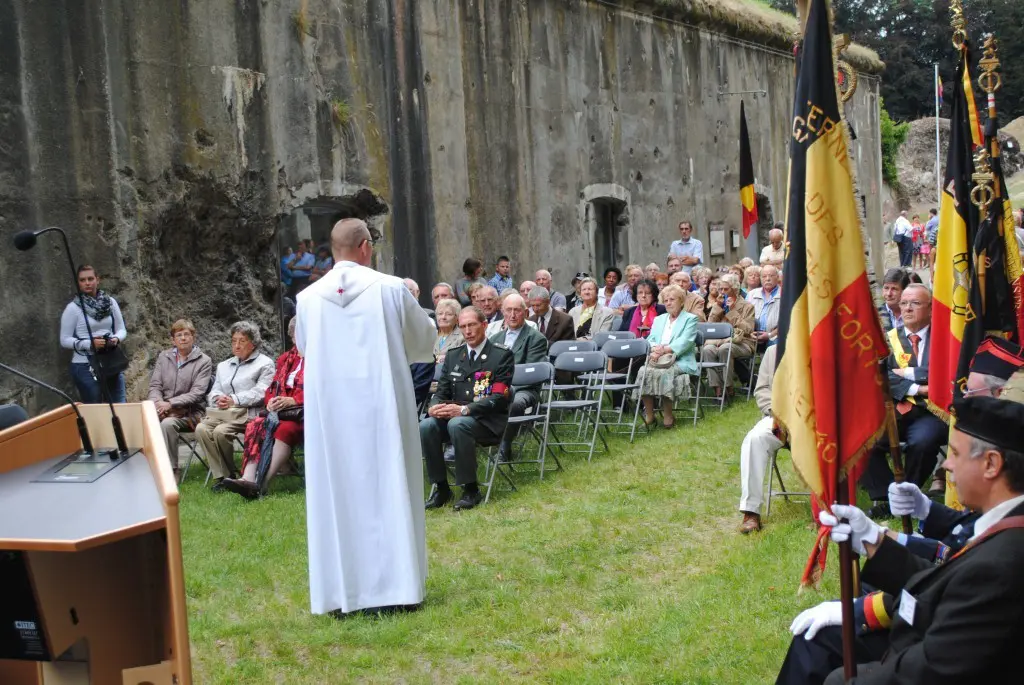 Lorsqu’il a été appelé sous les drapeaux pour effectuer son service militaire, l’abbé Dominique Chaboteau, 62 ans, le reconnaît bien volontiers, il n’était guère motivé. Ordonné quelques temps plus tôt, il a ainsi mené de front son service à la paroisse Saint-Martin d’Arlon où il était vicaire et son service militaire. Bien loin alors d’imaginer que c’est dans l’armée qu’il exercerait une large part de son ministère. « L’Esprit Saint m’y a « obligé » et il a bien fait. Le Bon Dieu vous envoie là où vous ne l’auriez jamais pensé. » Et depuis sur le terrain, dans son bureau ou encore lors des manifestations patriotiques où il est présent (la photo : ici, au fort de Loncin), il sait qu’il est là pour ces hommes de terrain. Il sait aussi qu’il n’est pas seul : « Dans mon sac à dos, j’emmène Jésus-Christ ».