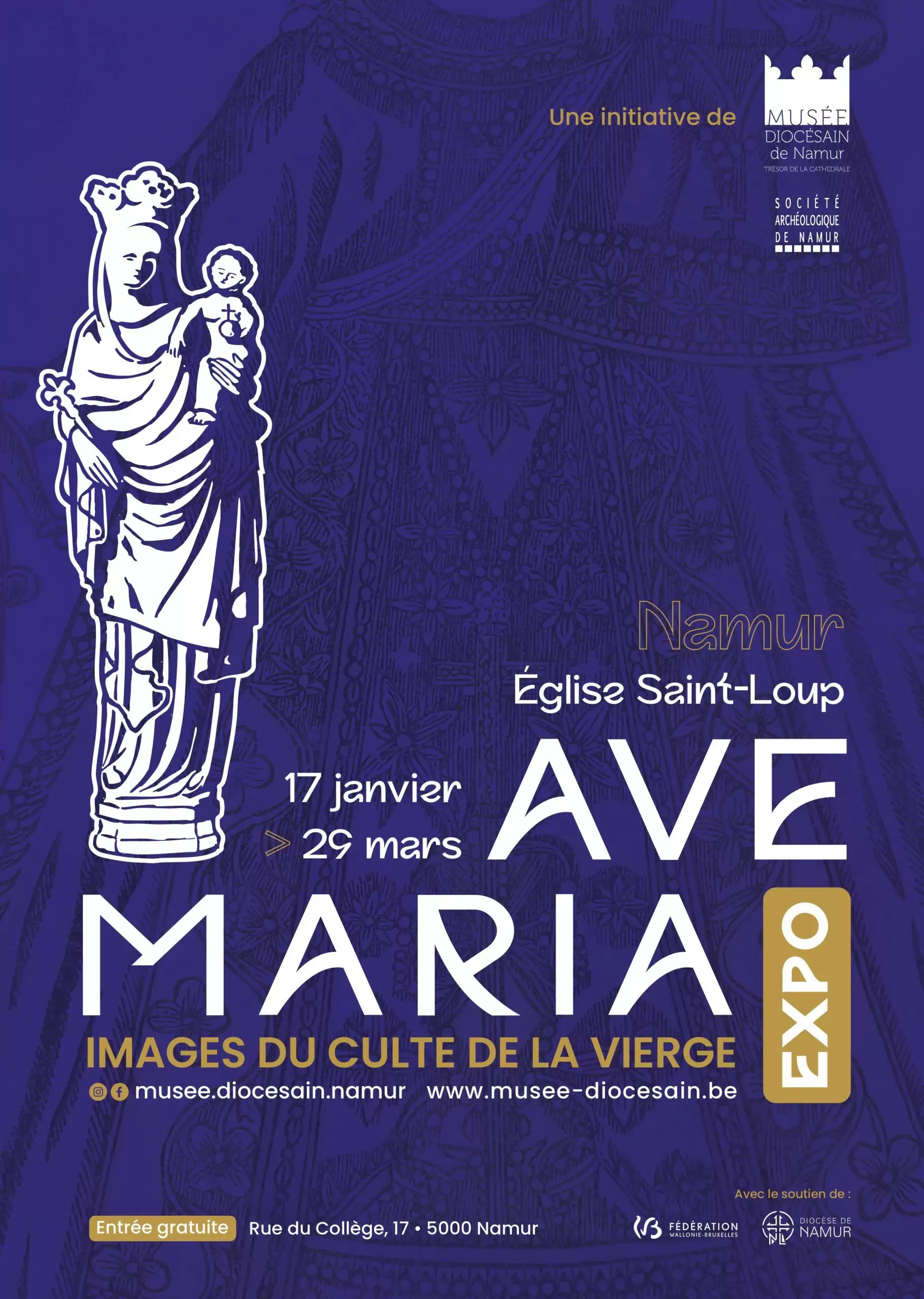 Dans l’écrin baroque de l’église Saint-Loup à Namur, l’exposition Ave Maria invite le visiteur à regarder autrement les images et les objets qui entourent la dévotion mariale. Participer à une visite guidée de l’exposition voilà ce qui est proposé le samedi 28 février. Les commentaires seront assurés par la responsable scientifique.