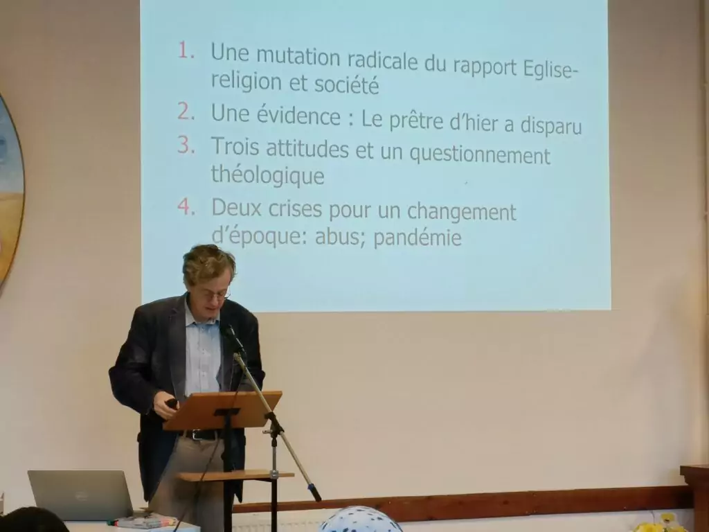 Le mardi, après l’intervention du théologien Arnaud Join-Lambert sur le catholicisme belge contemporain, les participants ont été confrontés à des sujets plus douloureux : la crise des abus sexuels et de pouvoir, la démission de l’évêque de Bruges, ou encore la période Covid, où le culte était considéré comme “non essentiel”.