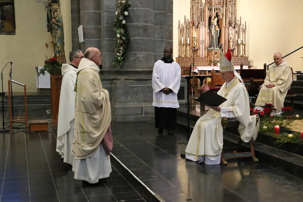 Le père Bernard Lorent, Père Abbé en fonction pour quelques instants encore remercie, en ouvrant cette célébration, les fidèles de l’abbatiale. Remerciements pour partager ce moment de joie avec la communauté. On le savait déjà, le Père Abbé Bernard ne manque pas d’humour : « Être supérieur dans une communauté n’est pas une sinécure et ce l’est encore moins à Maredsous avec les nombreuses et très variées activités ! » Dom Bernard Lorent de se souvenir des propos de Mgr Léonard lorsque celui-ci lui a conféré la bénédiction abbatiale : « Ne refuse jamais une interview même si c’est dangereux. Quand on parle de l’abbaye, Dieu est présent. Derrière toi, il y a l’Eglise. Je ne l’ai jamais oublié. Je vous demande de prier pour mon successeur. Être Père Abbé, c’est être un équilibriste. On touche à de multiples tâches pour lesquelles nous ne sommes pas spécialement préparés. »
