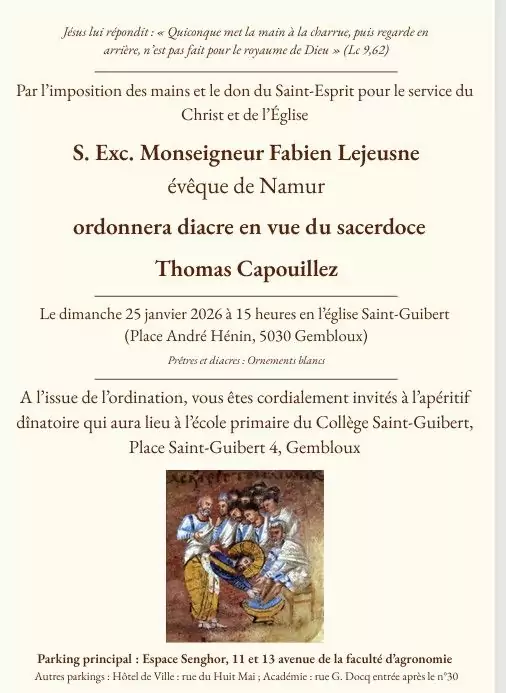 Le dimanche 25 janvier prochain à 15h, en l’église Saint-Guibert de Gembloux, Thomas Capouillez sera ordonné diacre en vue du sacerdoce. À 31 ans, ce jeune homme au regard paisible et au parler simple avance avec une joie profonde sur le chemin que le Seigneur a ouvert devant lui. Rencontre avec un futur diacre ancré dans la terre, habité par la prière et confiant dans l’appel reçu.