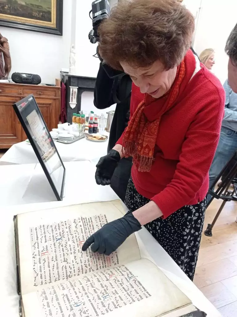 Les deux institutions conservent des manuscrits issus de l’ancienne abbaye de Marche-les-Dames, dont le patrimoine fut dispersé au 19e siècle après la suppression des communautés religieuses à la fin du 18e siècle. Livres de chant, antiphonaires, fragments épars : ces témoins des 15e et 16e siècles racontent la vie liturgique des moniales cisterciennes. C’est dans le cadre de l’étude approfondie de ces manuscrits qu’Anne-Emmanuelle Ceulemans, musicologue et professeure à l’UCLouvain, (la photo) a fait la découverte.
