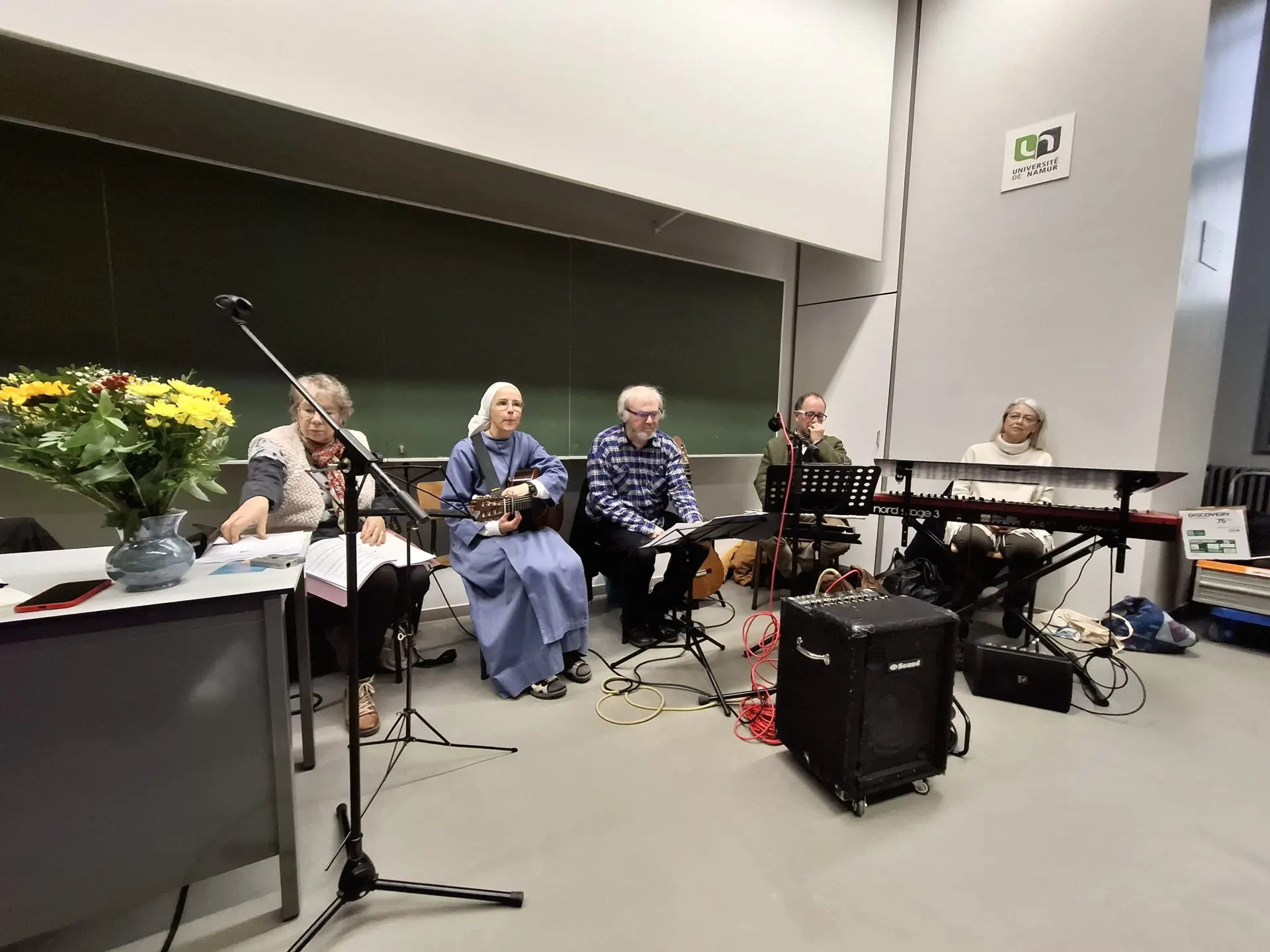 Pour ouvrir l’après-midi, le chant « Vivre comme le Christ » lancé par Béatrice Sépulchre, est repris par l’assemblée, ensuite Sœur Marie-Françoise, déléguée épiscopale à la vie consacrée du diocèse de Namur, présente Sœur Véronique Margron, présidente de la CORREF et engagée dans l’accueil et l’écoute des victimes d’abus de toutes sortes.