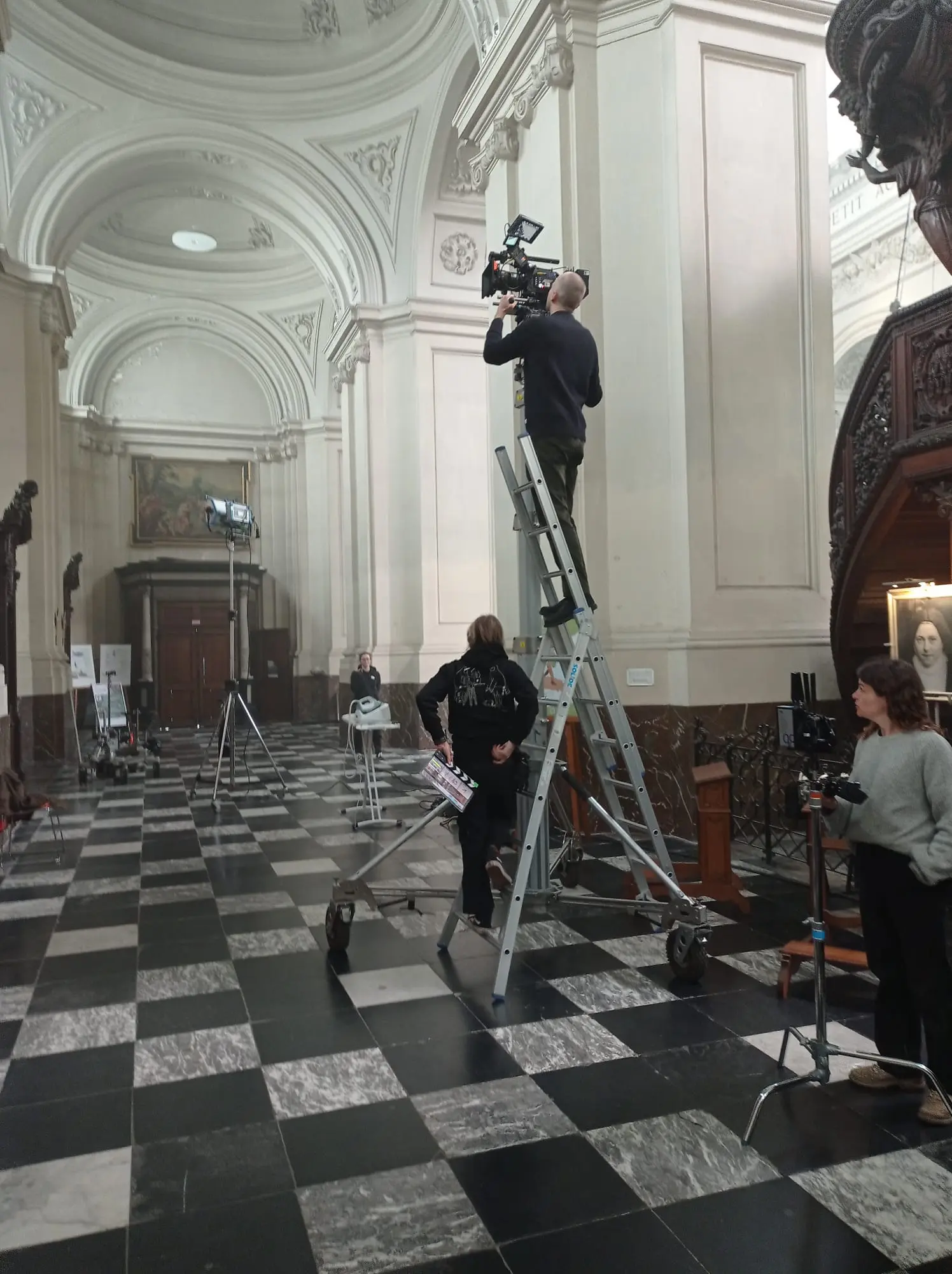 Tourner un film demande du temps, beaucoup de temps. Il y a bien sûr le travail d’écriture, la recherche de comédiens pour les différents rôles, des apports financiers… Le travail de prospection en vue de trouver les lieux de tournage demande, là aussi, un investissement important. L’équipe est déjà passée par l’abbaye de Maredsous pour y tourner plusieurs scènes. Lundi, tous étaient, à Namur, à la cathédrale. Une cathédrale qui a réussi brillamment le casting ! Plusieurs lieux avaient été sélectionnés pour le tournage de scènes majeures du film et c’est la cathédrale Saint-Aubain qui a remporté les suffrages.