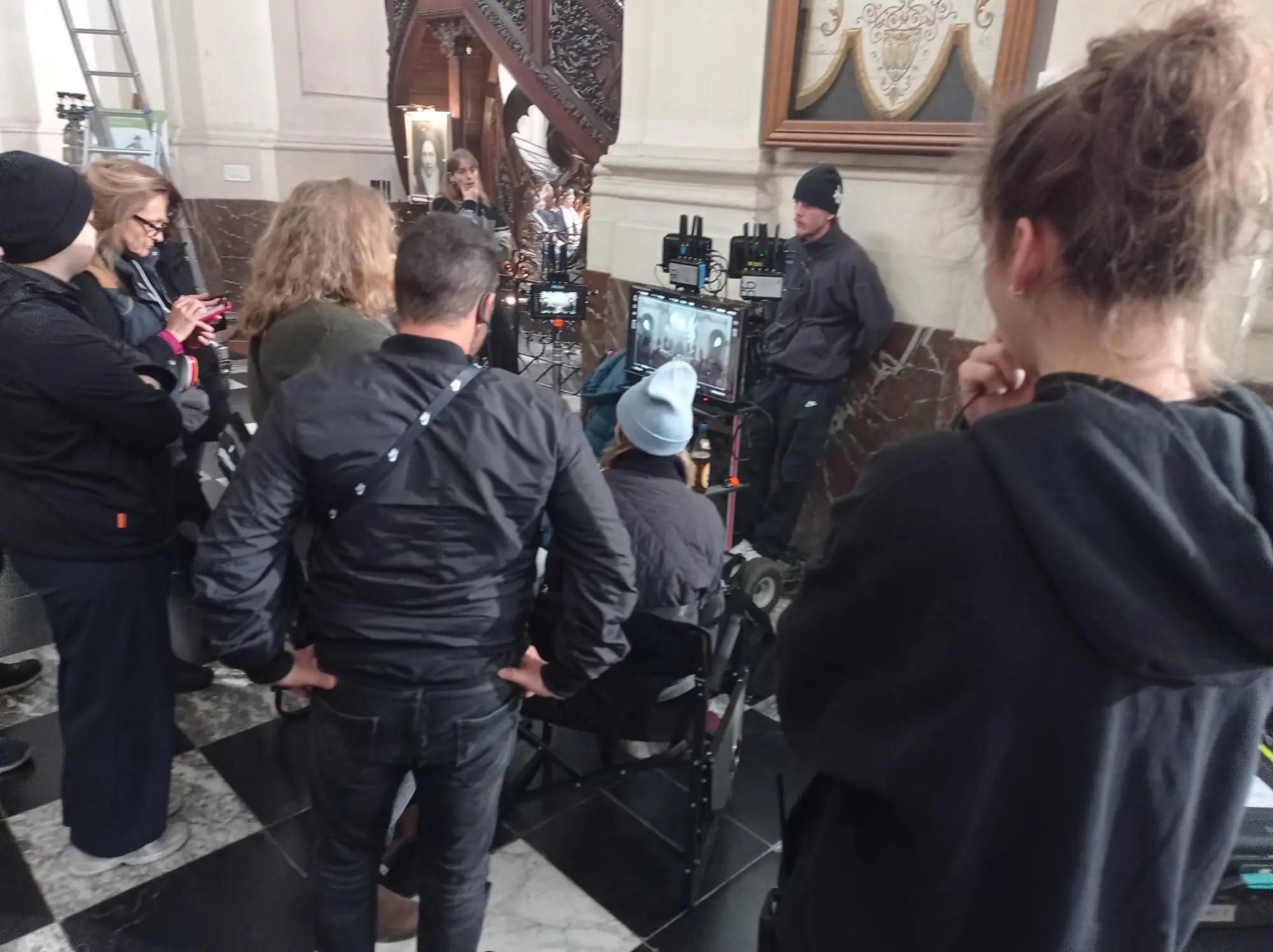 Les figurants, ils seront plus de 300 tout au long de la journée sont sagement installés dans la cathédrale, ils représentent les fidèles. Entre les répétitions et les prises, ça chuchote. Et lorsqu’une pause est décidée, la discussion va bon train. Tony vient de Liège, Laurent de Charleroi et ils sont mordus de figuration. Ils aiment beaucoup découvrir l’envers du décor. Ils sont aussi très patients. Entre les réglages, les répétitions et les tournages… c’est long, très long. Jean-François se souvient d’un tournage où il est arrivé très tôt le matin pour tourner dans la soirée. Tony aime raconter le tournage de « La vengeance de Maître Poutifard » avec Christian Clavier. Même si les figurants n’ont pas trop de contacts avec les vedettes, les apercevoir, les voir jouer leur suffit le plus souvent.