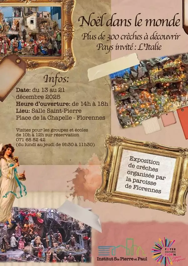 Une exposition qui se tiendra du 13 au 21 décembre à la salle Saint-Pierre, place de la Chapelle à Florennes. On vous y attend, tous les jours, de 14 à 18h. Organisée par la paroisse de Florennes, cette exposition est aussi ouverte aux groupes et aux écoles, de 10 à 12h. Pour cela, il suffit de réserver au 071/68.82.42, du lundi au jeudi, de 9h30 à 11h30.