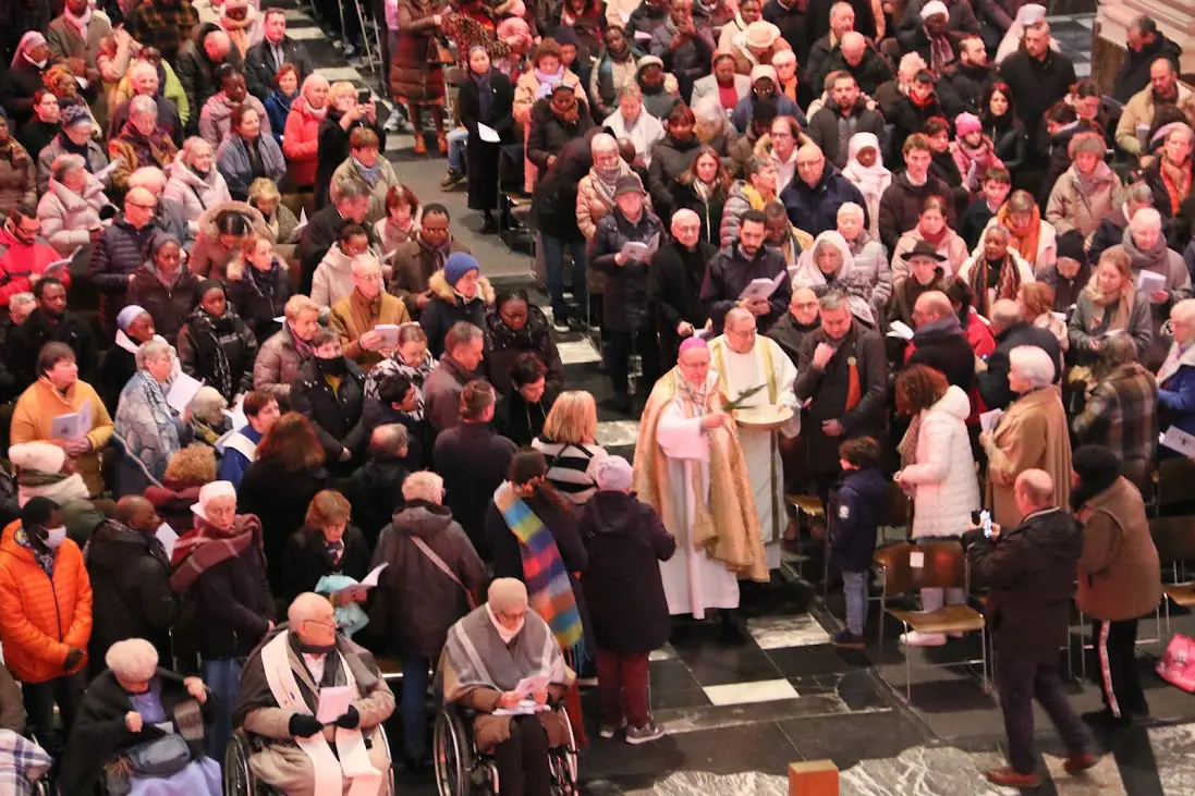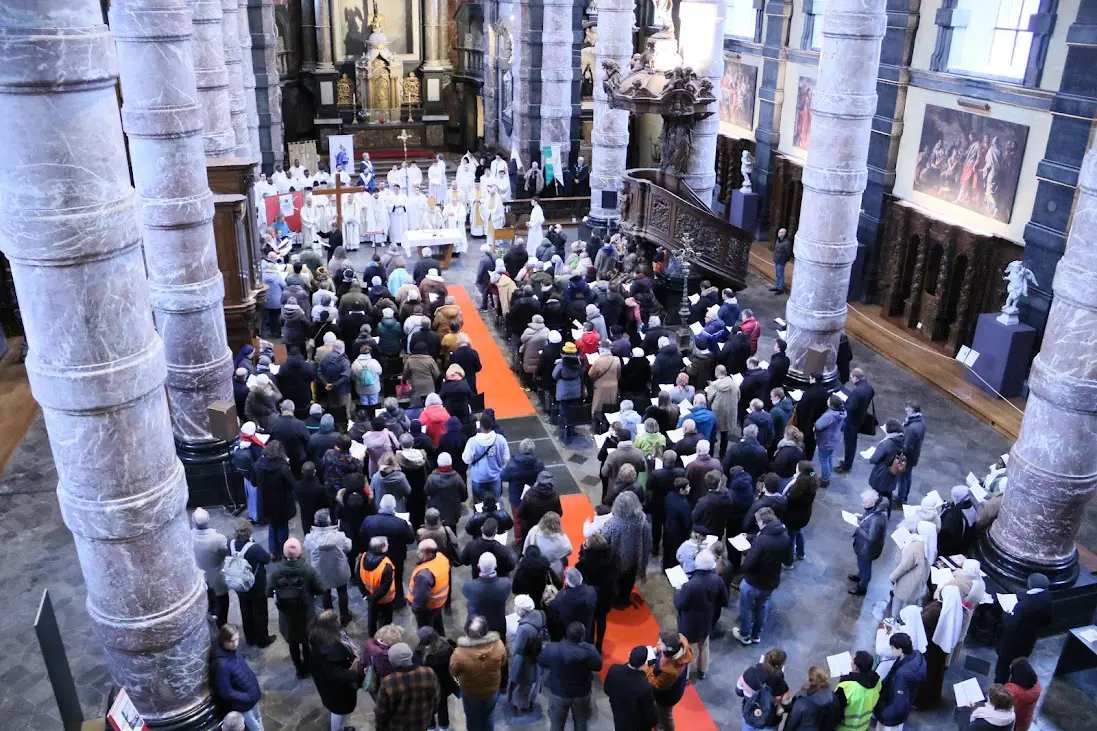 Comme partout dans le monde, l’Année Sainte a été ouverte, ce dimanche 29 décembre, dans le diocèse de Namur. Les fidèles étaient au rendez-vous et, ils ont même pu participer, c’était là un souhait du pape François, à un pèlerinage. Ou plutôt à une procession. Ils ont marché derrière la croix et l’évêque vers la cathédrale. La célébration d’ouverture de l’Année Sainte y a été vécue dans la simplicité et la prière. Une année sous le signe de l’espérance : « Spes non confundit », « l’Espérance ne déçoit pas ».