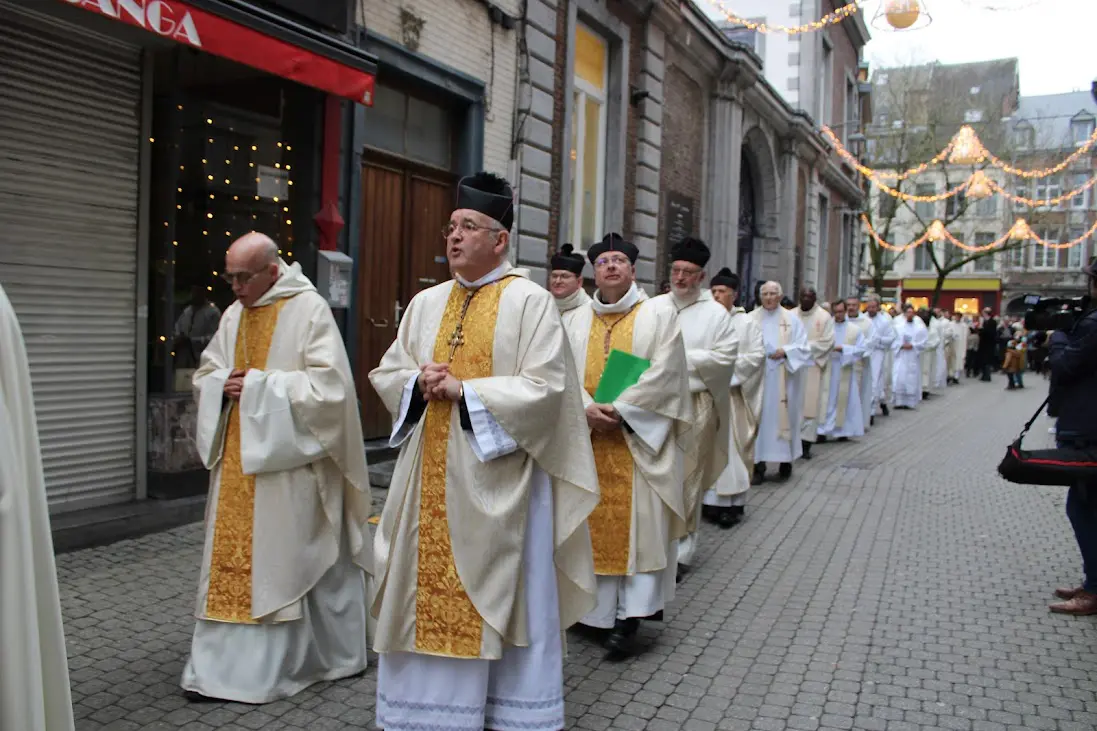 Cela faisait bien longtemps qu’une procession n’avait parcouru les rues de Namur. Une imposante présence qui n’a pu que surprendre les promeneurs du jour ! Une procession voulue par le pape François : « Le signe particulier de l’ouverture solennelle de l’Année jubilaire est le pèlerinage avec l’entrée processionnelle de l’Eglise diocésaine, derrière la croix où le pasteur du diocèse exerce son magistère, préside les mystères divins, la liturgie de louange et de supplication, et conduit la communauté ecclésiale. »