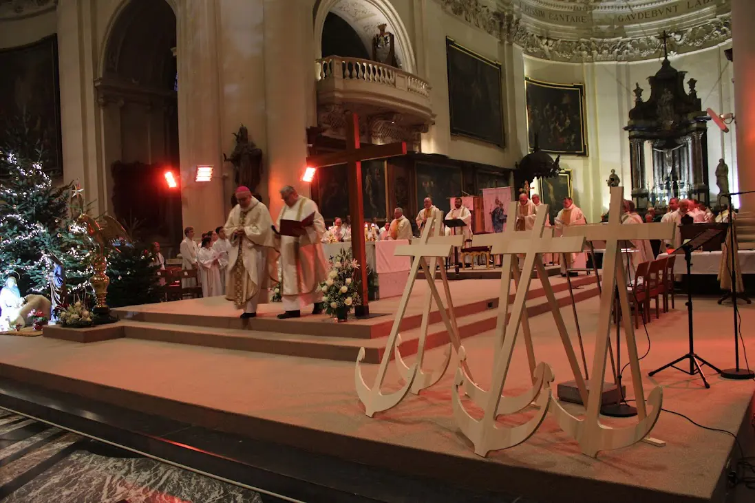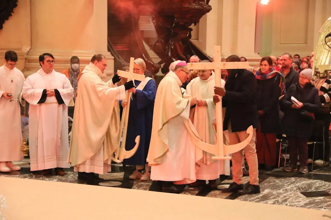 Cette ouverture de l’Année Sainte s’est terminée par la remise d’une ancre aux représentants des églises jubilaires. Outre la cathédrale, pour la province de Namur, sont églises jubilaires : la basilique de Walcourt et le sanctuaire de Beauraing. Pour la province de Luxembourg : la basilique de Saint-Hubert et l’église Saint-Martin d’Arlon. Dans chacun de ces lieux, un accueil quotidien sera proposé ainsi que la possibilité de recevoir le sacrement de réconciliation. Un programme qui devrait, prochainement, s’étoffer. Pourquoi une ancre dans ces églises ? L’ancre est utilisée comme métaphore de l’espérance. On parle de l’ancre de salut (Maîtresse-ancre, ou ancre de miséricorde). L’ancre qui dans l’argot des marins représente aussi l’espérance le nom donné à l’ancre de réserve, utilisée dans les embarcations pour accomplir une manœuvre d’urgence en vue de stabiliser le navire durant les tempêtes…