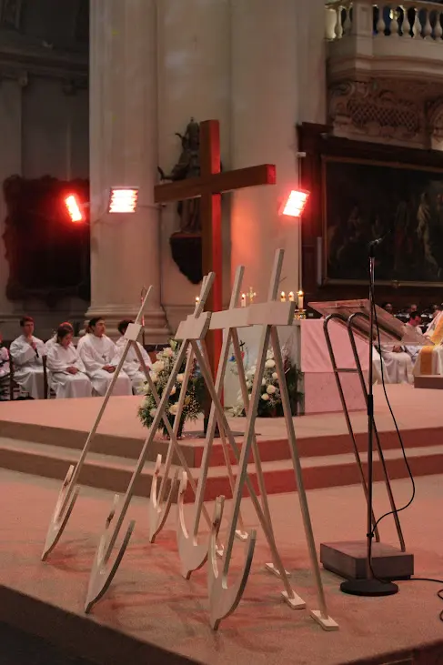 Sur le parvis de la cathédrale, Mgr Warin lèvera la croix portée jusque-là par trois diacres et invitera chacun à la vénérer après avoir proclamé « Tu es notre espérance, nous ne serons jamais confondus. » Chacun ayant pris place dans la cathédrale comble où des chaises avaient été ajoutées, l’évêque pouvait remonter l’allée centrale en bénissant l’assemblée. Une manière de faire mémoire de notre baptême.