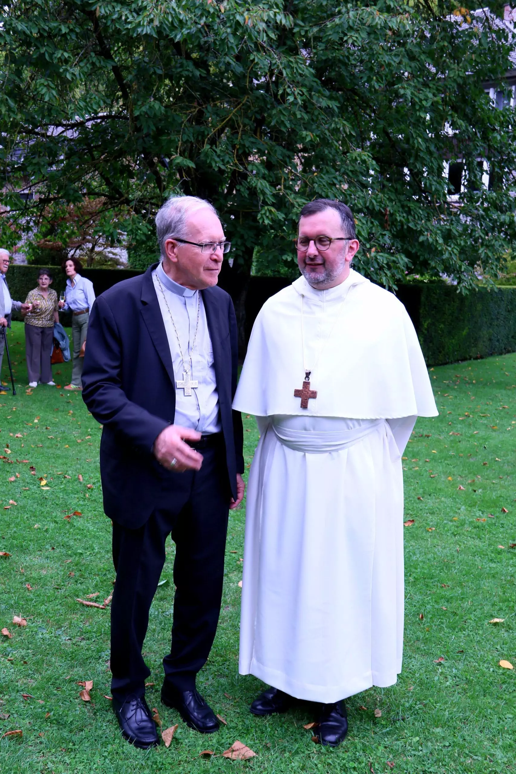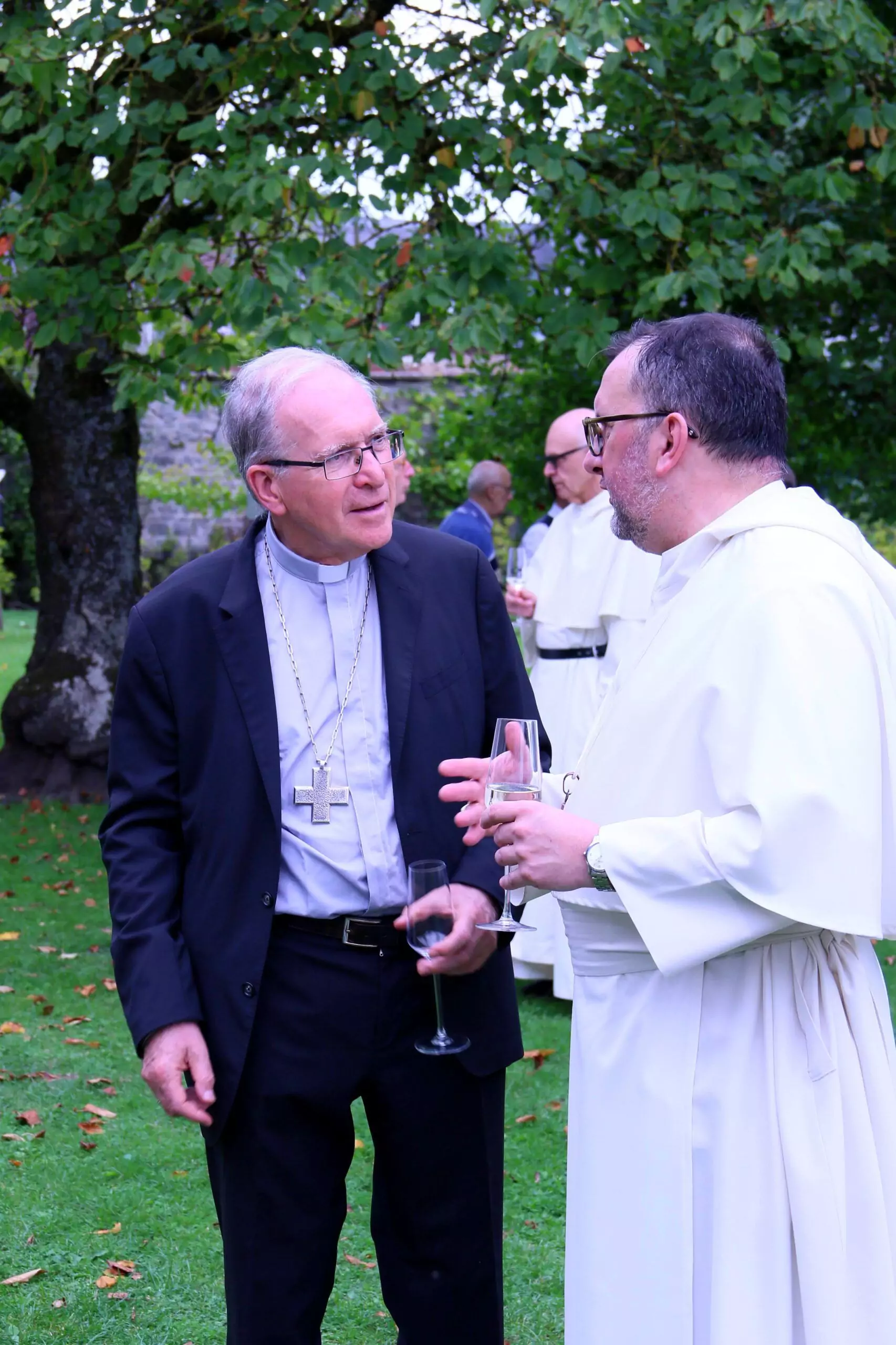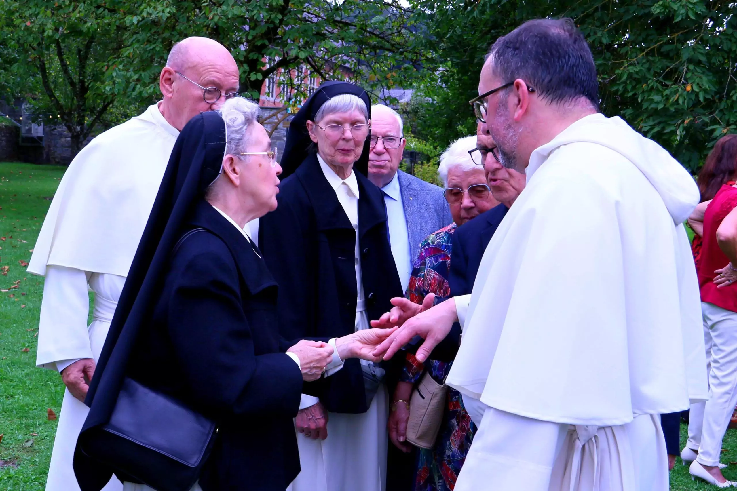 A l’issue de la partie liturgique, le père abbé a pris la parole pour remercier tous ceux à l’origine de sa vocation, ceux qui se sont investis dans la lumière ou dans l’ombre pour que cette bénédiction abbatiale soit pleinement réussie… Le père abbé : « Au nom de notre communauté, je remercie Mgr Pierre Warin, évêque de Namur, d’avoir présidé cette célébration. Nos Constitutions disent que « les frères travailleront ensemble dans le diocèse, et maintiendront l’unité avec lui. Ils pratiqueront une hospitalité fraternelle, attentifs à être exemplaires. » (Const. 53). Monseigneur, vous pouvez compter – et votre successeur le pourra aussi – sur notre présence et notre engagement au service du règne de Dieu. »