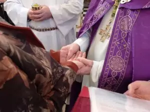 Après les témoignages, tous avaient rendez-vous à la chapelle du Séminaire pour une célébration de la Parole de Dieu. Les catéchumènes ont ainsi reçu de l’Eglise le symbole de la foi du Christ, le Credo. Mgr Lejeusne : « Frères et sœurs bien aimés : écoutez les paroles de la foi par laquelle Dieu sauve et rend juste. Elles sont peu nombreuses, mais elles contiennent de grands mystères. Accueilliez-les d’un cœur sincère et gardez-les. » Un Credo que les futurs baptisés comme leurs accompagnateurs pouvaient ensuite réciter. Après cet acte de foi, chaque catéchumène s’est présenté devant Mgr Lejeusne qui en a marqué les deux mains de l’huile des catéchumènes avant de bénir l’assemblée.