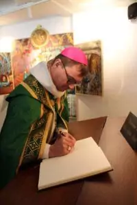 Le sanctuaire de Malonne, et c’est M. Robert Lerhot qui le précise « est un petit sanctuaire ». Lui fait partie des 20 bénévoles qui, chaque jour, se relaient pour assurer une présence, prendre note des intentions de prière reçues sur place mais aussi par téléphone. Et poursuivre la mission qui, pendant des années, a été celle du Frère Mutien Marie. Il a ainsi été l’intercesseur entre les demandes de personnes dans le désarroi, la peine et le Seigneur.