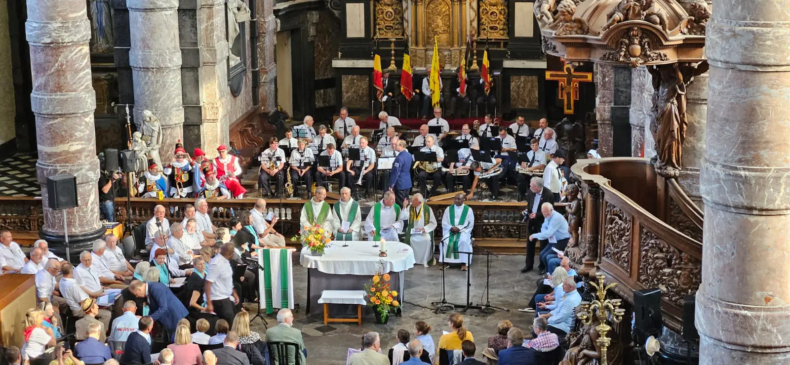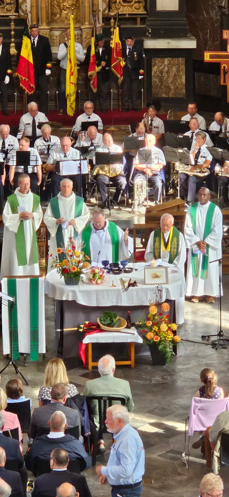 Après la bénédiction, c’est, comme de coutume la sonnerie « Aux Champs » qui a retenti avant la Brabançonne. A Namur, surtout en cette période de l’année, tout débute et se termine par… Li Bia Bouquet, bien sûr. Et lorsqu’il résonne dans l’église Saint-Loup, juste en face du presbytère occupé durant des dizaines d’années par l’abbé Malherbe qui a porté, coloré cette messe, il en est encore plus savoureux.