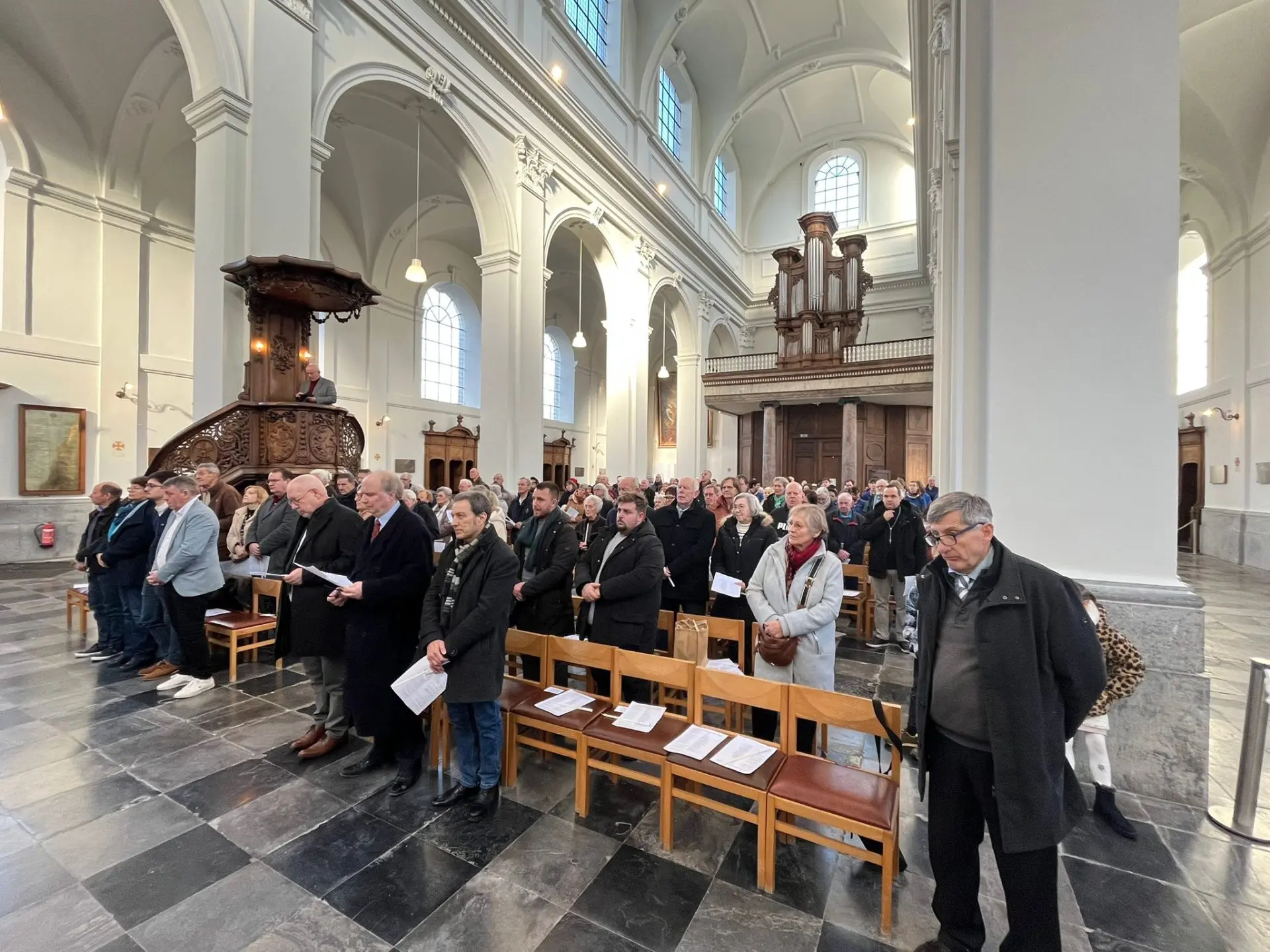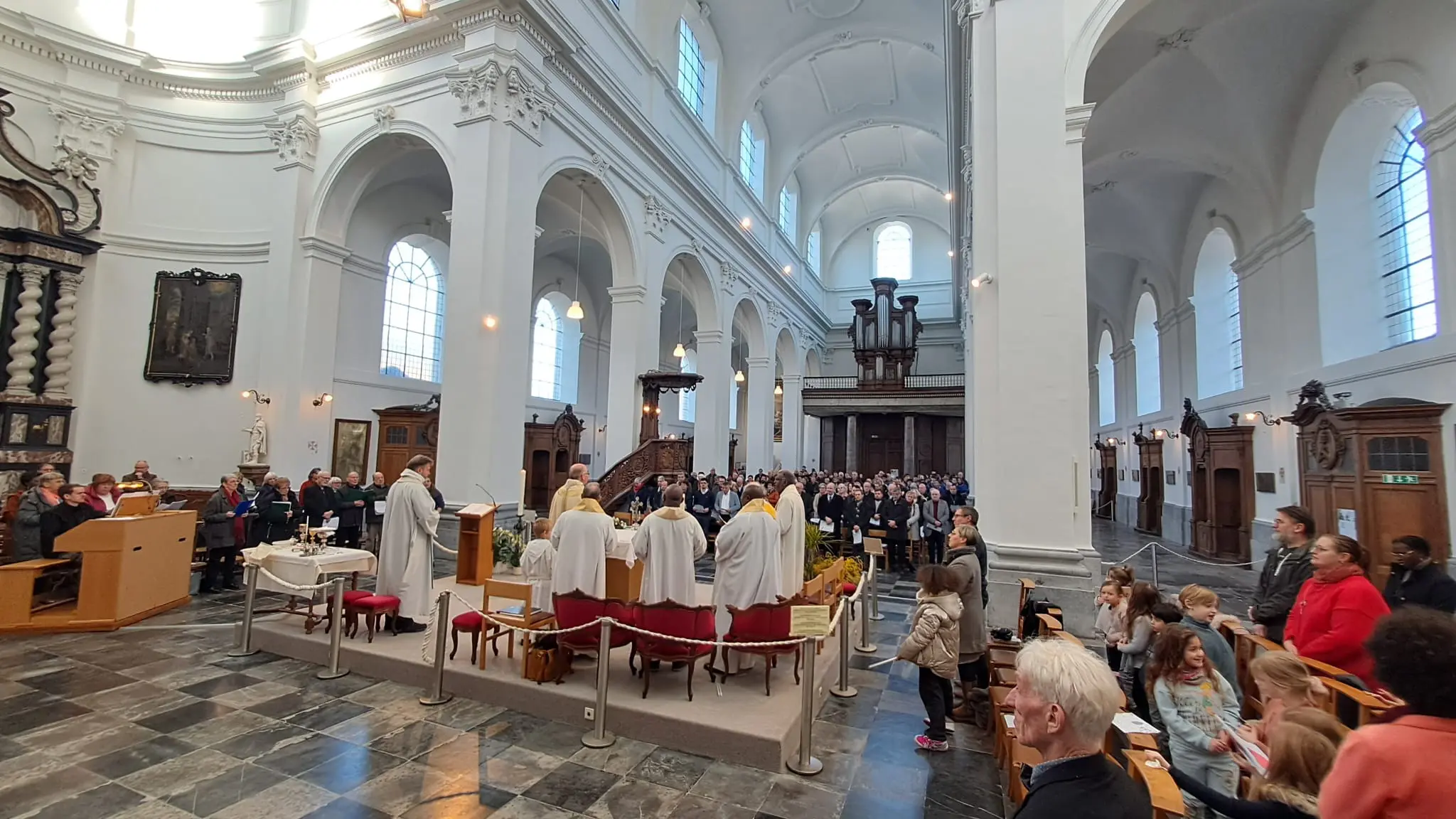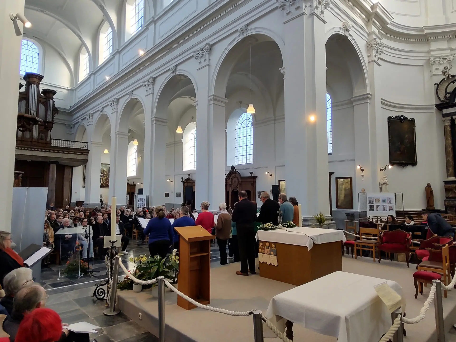 « Un pâle soleil d’hiver se faufile à travers les larges fenêtres pour éclairer la collégiale d’Andenne. Collégiale officiellement réouverte, le 1er février dernier, après une longue période de travaux menés tant à l’extérieur qu’à l’intérieur de l’édifice. Le dimanche, les fidèles se réappropriaient les lieux lors d’une eucharistie célébrée par le chanoine Joël Rochette, vicaire général.