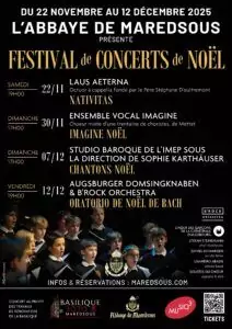- Exposition “Maredsous, hier et aujourd’hui” : cloître de la Basilique, entrée libre de 9h à 19h, jusqu’en janvier 2026.
