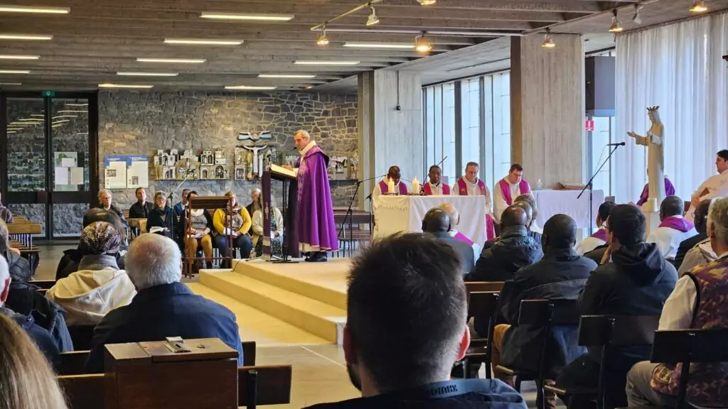 Sous un beau soleil de mars, la journée a rassemblé de nombreux participants venus prendre un temps de recul au cœur du Carême. Pour cette première récollection organisée sous son épiscopat, Mgr Lejeusne avait choisi d’inviter, une valeur sûre, le père Vincent Leclercq, augustin de l’assompation. Médecin de formation, théologien reconnu, enseignant et auteur, le père Leclercq est aujourd’hui en mission à Rome au service de la formation et comme postulateur de sa congrégation. Ses deux méditations ont guidé les participants dans une réflexion profonde sur le Royaume de Dieu et la mission des disciples dans le monde d’aujourd’hui.