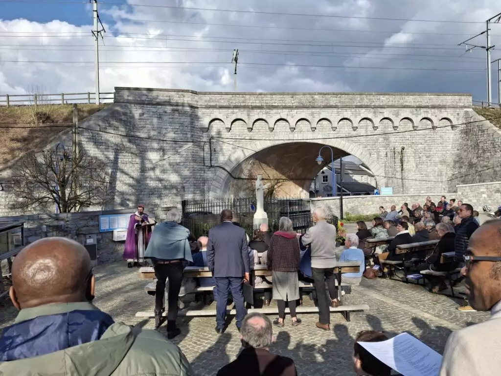 La journée s’est conclue par la prière des vêpres autour de l’Aubépine, lieu emblématique du sanctuaire de Beauraing, avant un mot d’envoi de l’évêque.