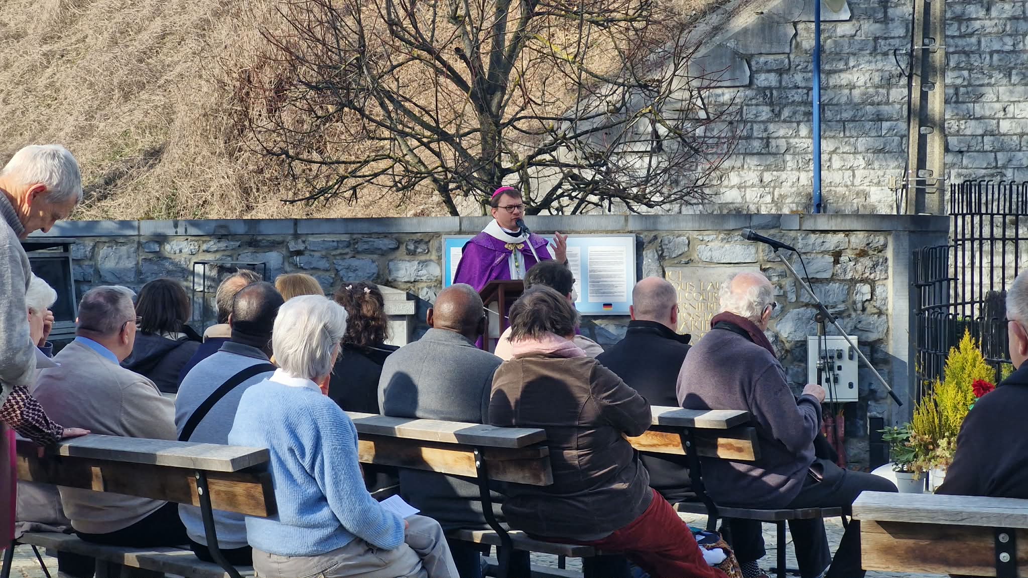 La journée s’est conclue par la prière des vêpres autour de l’Aubépine, lieu emblématique du sanctuaire de Beauraing, avant un mot d’envoi de l’évêque.