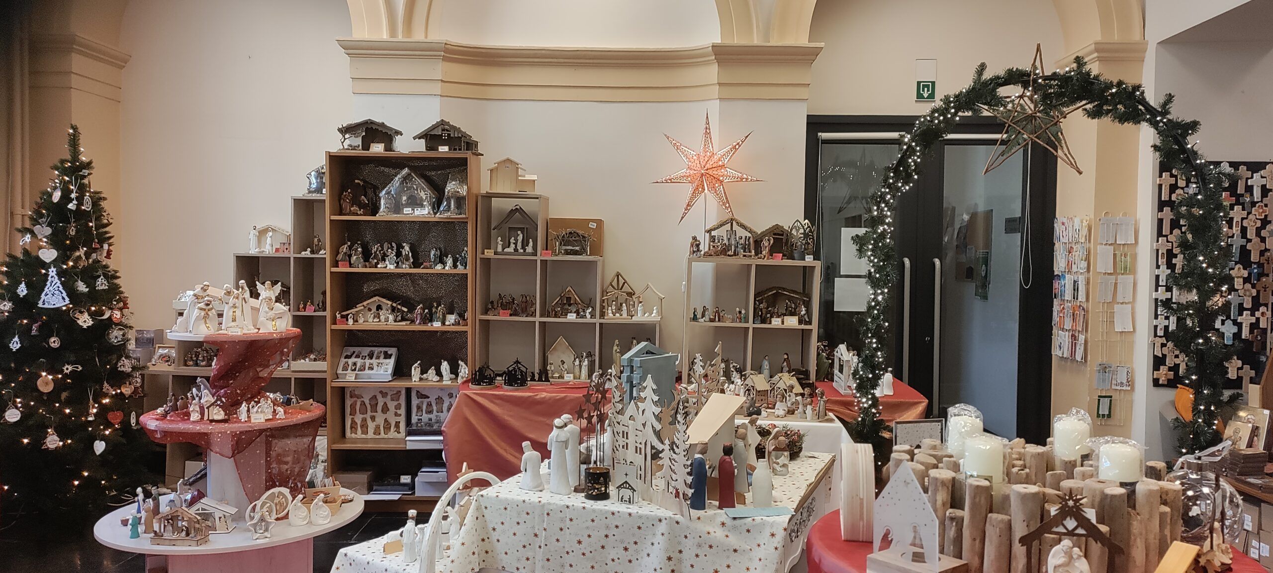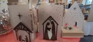 À côté des livres et des traditionnels santons de provence, le Marché de Noël du CDD propose également une très belle sélection d’objets artisanaux et de décorations : des crèches boules à neige, des mini-crèches en bois à suspendre, des crèches sur verre rétroéclairées à la bougie ; des crèches Emany en albâtre blanc ; des crèches en bois et métal « La Commanderie » ; des crèches Howoki, pièces uniques en bambou façonnées par des familles chrétiennes dans un atelier d’insertion.