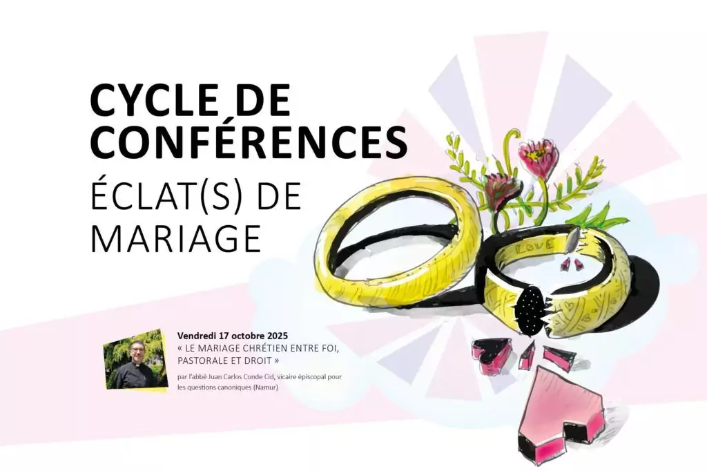 C’est un cycle de conférences 2025-26 sur le thème du mariage chrétien dans sa réalité canonique, sacramentelle et liturgique, dans ses richesses et ses fragilités. Nous avons choisi pour titre général : « Eclat(s) de mariage », «éclat(s)» faisant référence autant à l’intensité/vivacité du mariage.