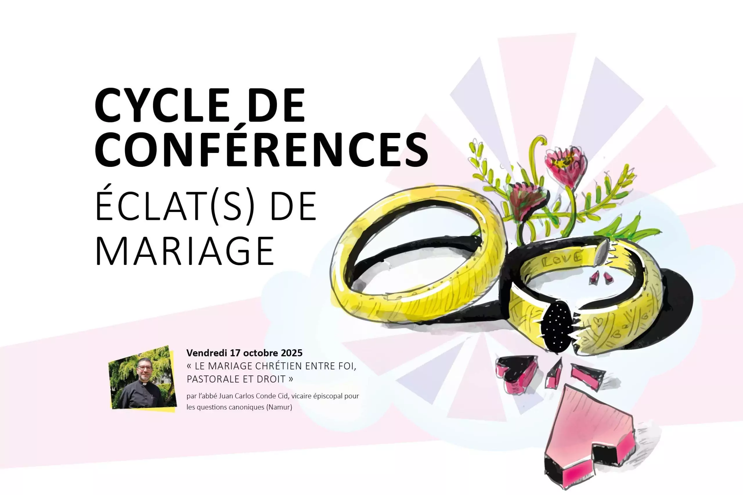 Ce 17 octobre, soyez les bienvenus pour la conférence de l’abbé Juan Carlos Conde Cid, vicaire épiscopal pour les questions canoniques (Namur). Il parlera du « mariage chrétien entre Foi, Pastorale et droit ». Vous pouvez suivre cette conférence au Séminaire de Namur dès 19h30 mais également en ligne à travers la chaîne YouTube du Diocèse en cliquant ici. La participation est libre.