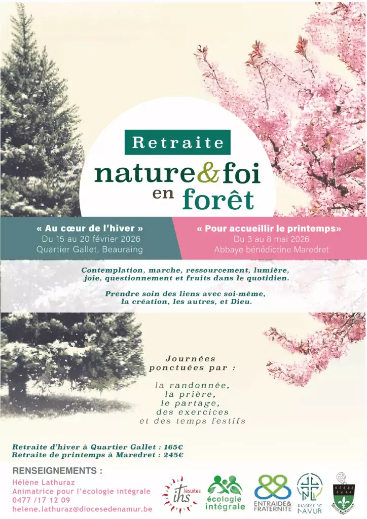 Pour plus d’informations et vous inscrire, nous vous invitons à prendre contact avec Hélène Lathuraz par mail helene.lathuraz@diocesedenamur.be ou par téléphone au 0477 17 12 09