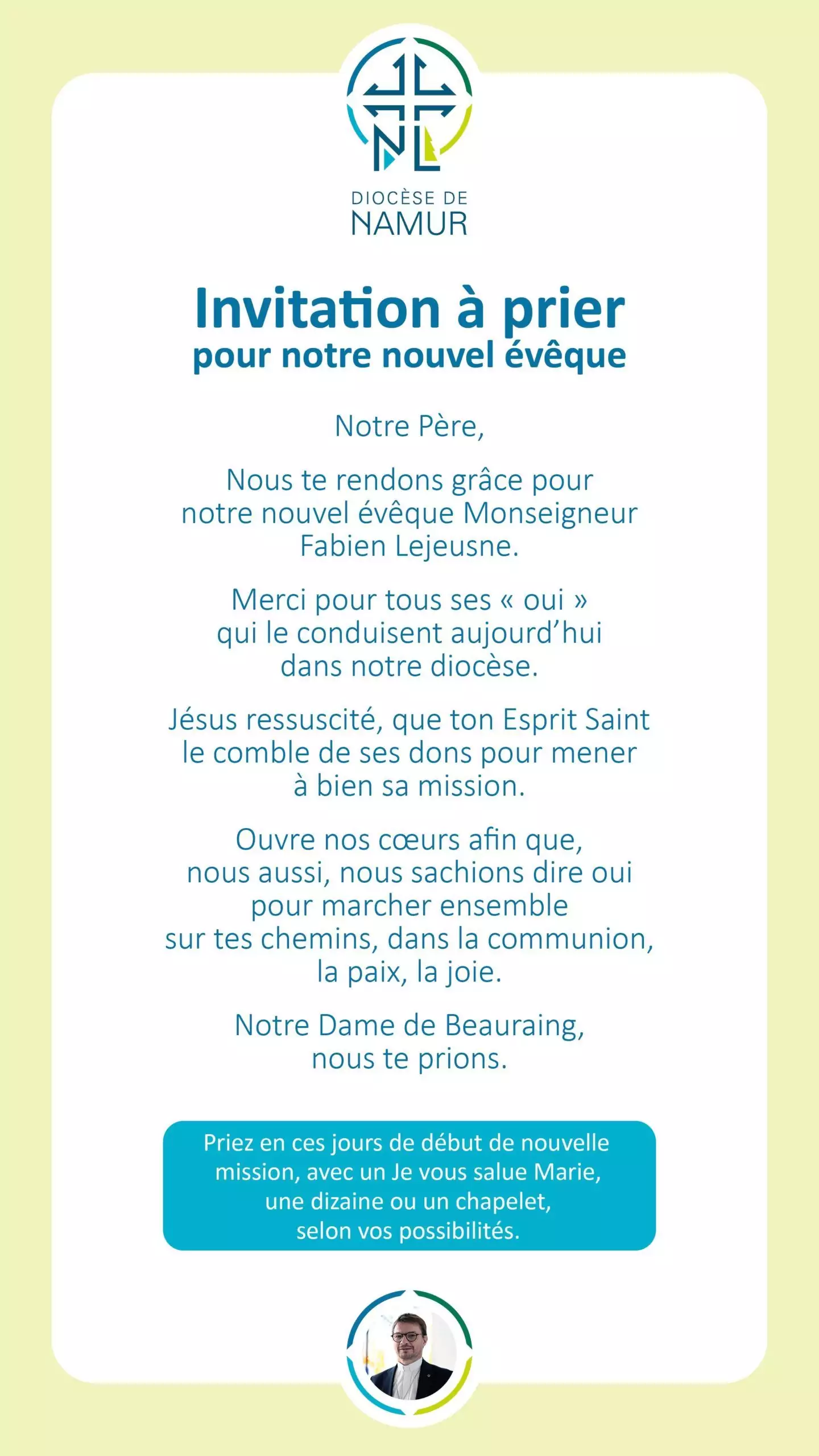 Signet de prière pour Mgr Lejeusne : Priez en ces jours de début de nouvelle mission, avec un Je vous salue Marie, une dizaine ou un chapelet, selon vos possibilités. Une prière réalisée par le service de la catéchèse et Vocatio